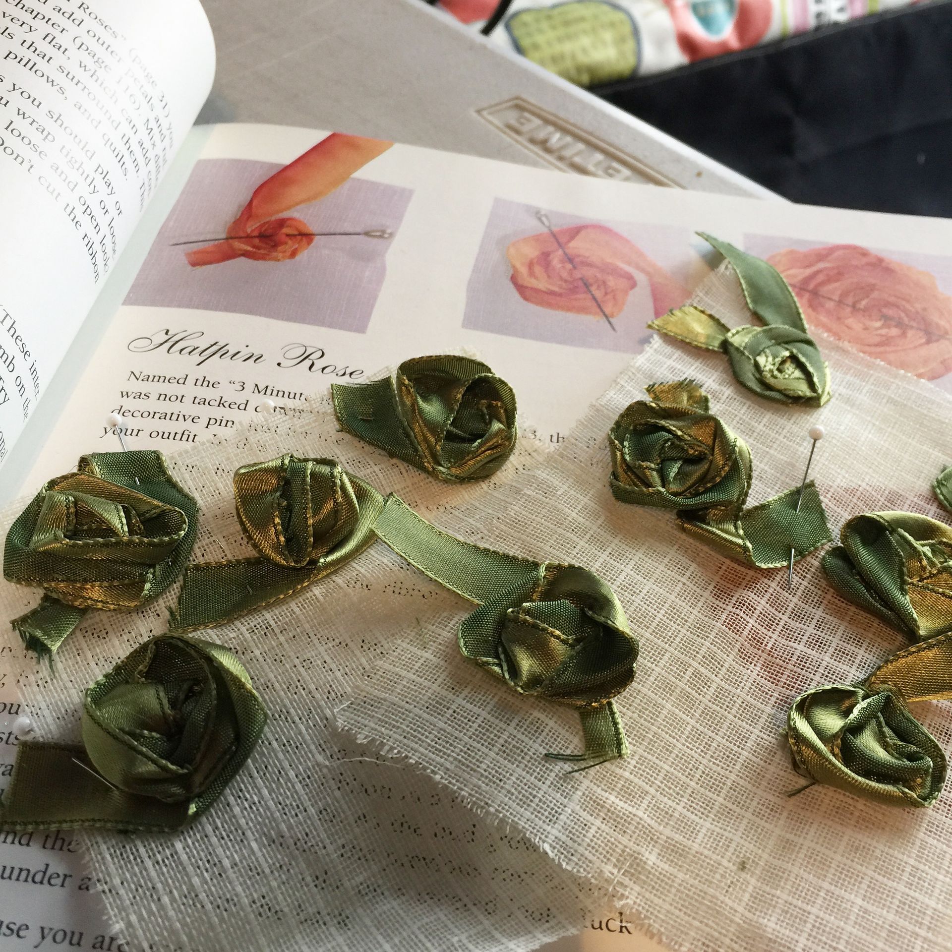 Fun fact: My love of arcane sewing techniques came in handy--there were not enough vintage rosebuds for the double Trudy dress and I had to make them from scratch